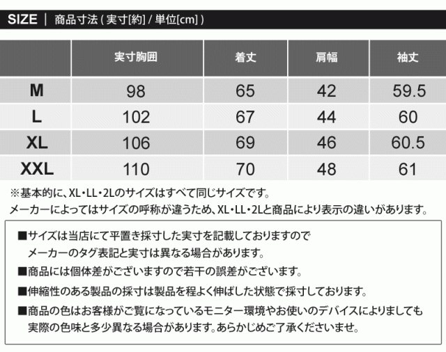 ※基本的に、XL・LL・2Lのサイズはすべて同じサイズです。