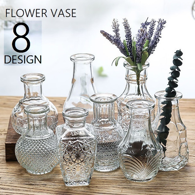 花瓶 花びん フラワーベース 花器 装飾 一輪挿し 卓上 置き型 ガラス製 クリア スケルトン インテリア小物 雑貨 透明 凹凸