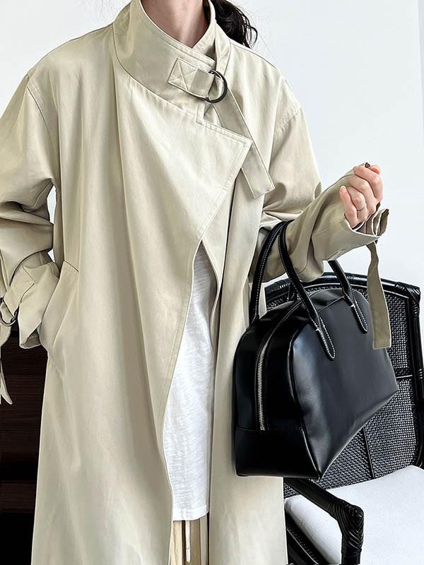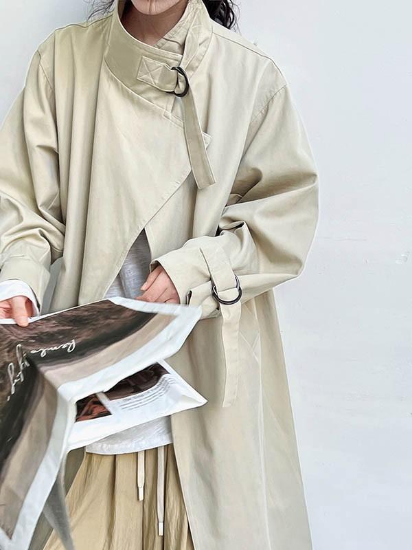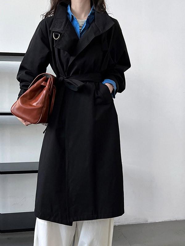 スタンドカラーコート スプリングコート トレンチコート レディース 春コート 秋コート 前開き ベルト付き ロングコート オーバーサイズ 大きめ ミモレ丈コート ドロップショルダー オータムコート ボタンなし オフホワイト 白 ブラック 黒 dg137x1x1l9