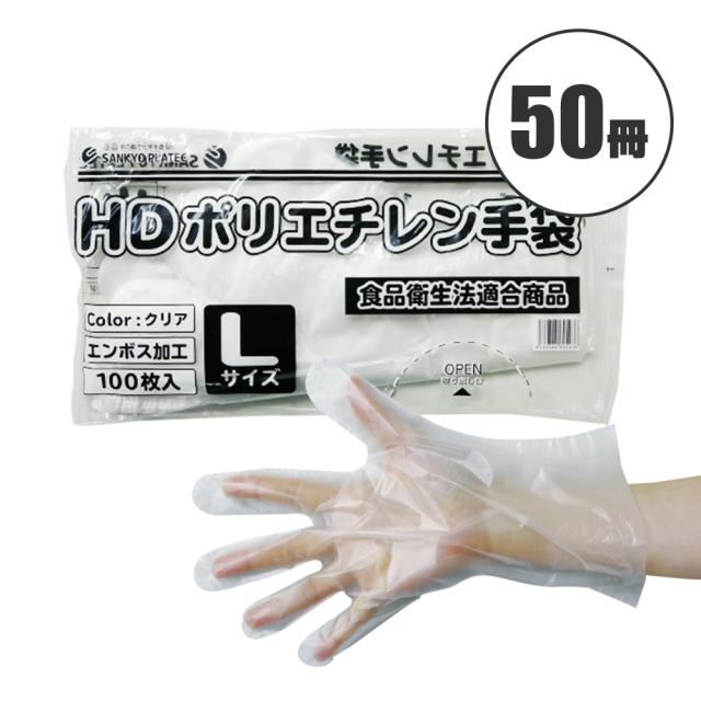 ポリエチレン手袋 HD Lサイズ 半透明 約25.5x28.5cm 100枚x30冊 HPGL-100bara30 片エンボス 衛生手袋 使い捨て ポリ手袋 食品衛生法適合 左右兼用