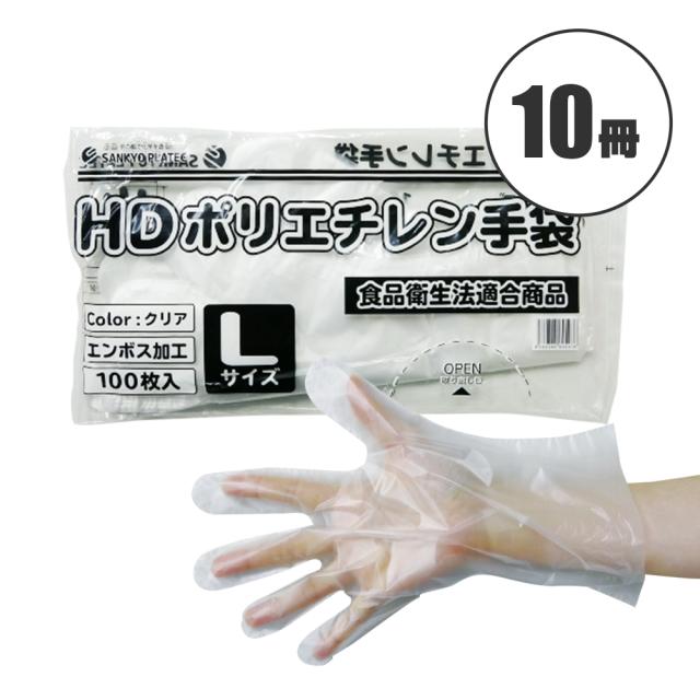 ポリエチレン手袋 HD Lサイズ 半透明 約25.5x28.5cm 100枚x50冊 HPGL-100bara50 片エンボス 衛生手袋 使い捨て ポリ手袋 食品衛生法適合 左右兼用 サンキョウプラテック