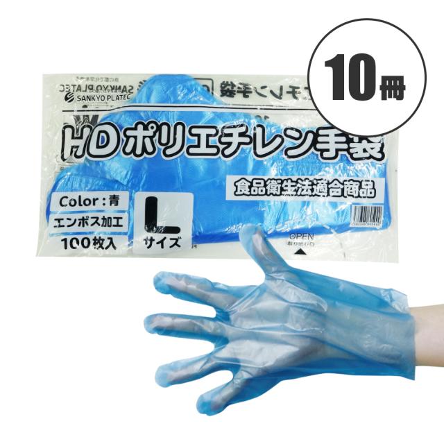 ポリエチレン手袋 HD Lサイズ 青 約25.5x28.5cm 100枚x30冊 HPGL-100Bbara30 片エンボス 衛生手袋 使い捨て ポリ手袋 食品衛生法適合 左右兼用
