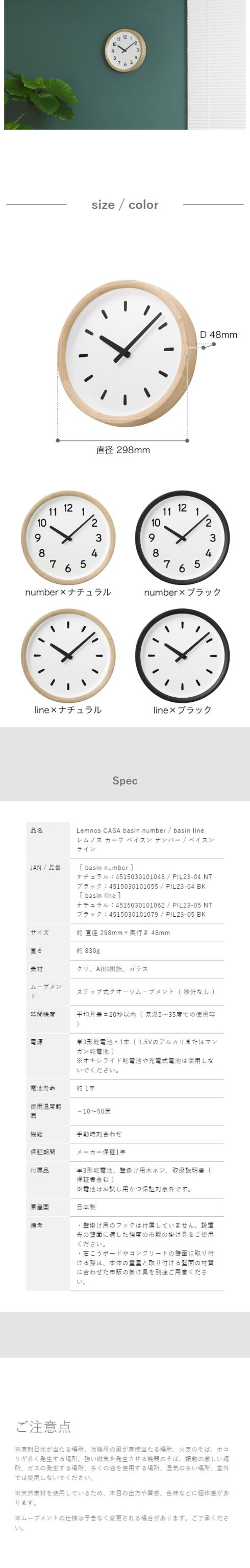 [ CASA basin number/basin line ]レムノス 掛け時計 壁掛け時計 ベイスン ナンバー ライン 時計 おしゃれ ウォールクロック 静音 壁掛け 木製 掛時計 北欧 リビング インテリア シンプル タカタ PIL23【送料無料】