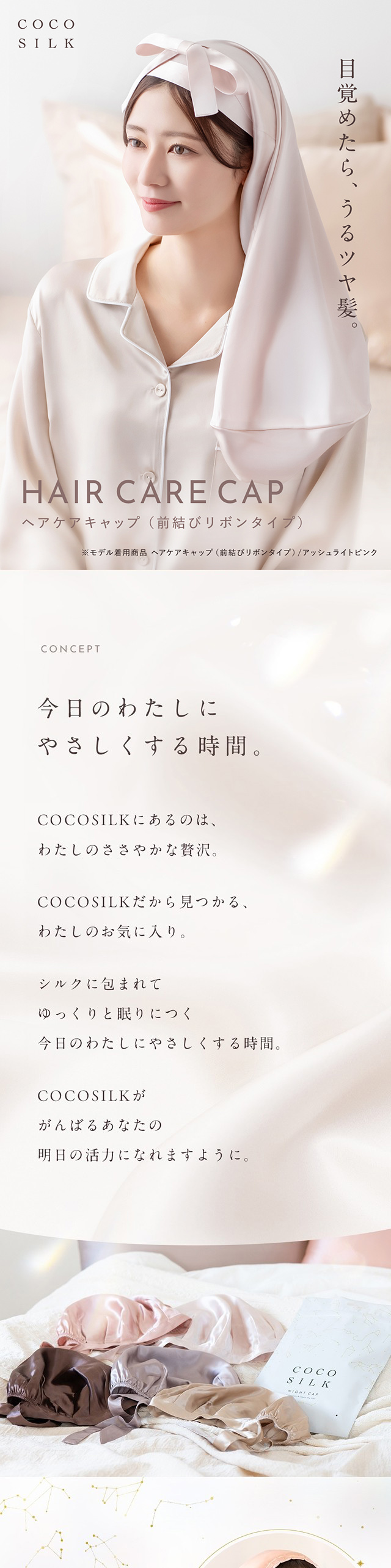 【公式】COCOSILK シルク100% ナイトキャップ 【60cm 前結びリボン】シルク ロングヘア COCOSILK ヘアケアキャップ ココシルク ナイトキャップ 紐 ロング ボブ ミディアム シルク100% 筒状