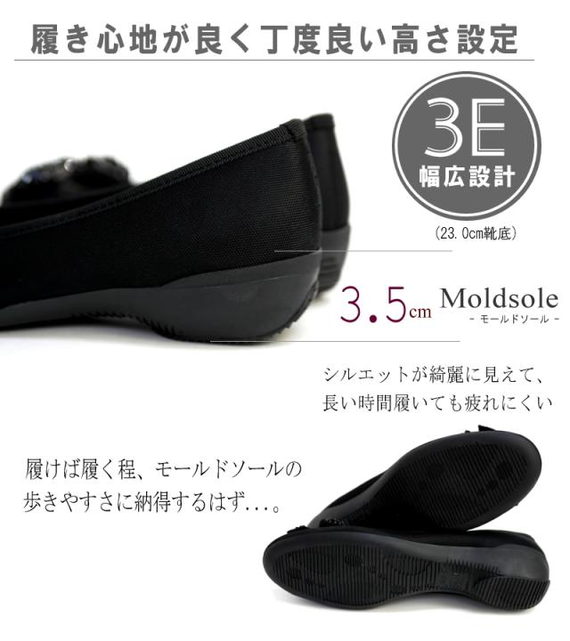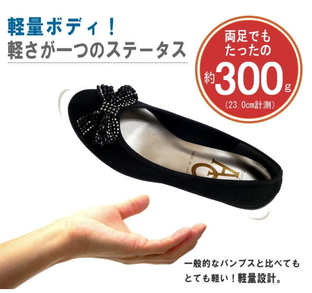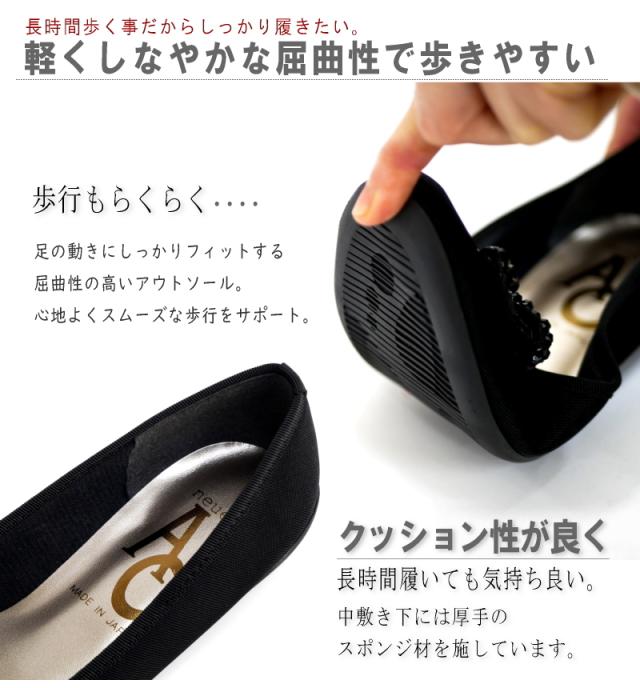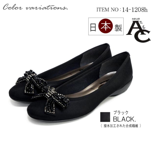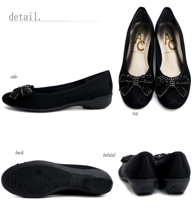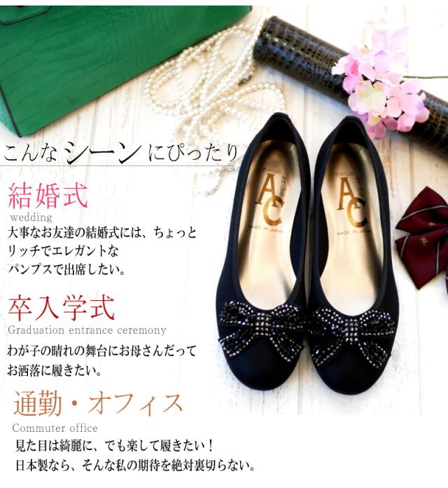 AC アミュエルコンセプト バレエシューズ 靴 レディース パンプス 日本製 軽量 撥水加工 汚れにくい ビジューリボン フラットソール モールド 黒 歩きやすい 痛くない 結婚式 卒入学 仕事 3e