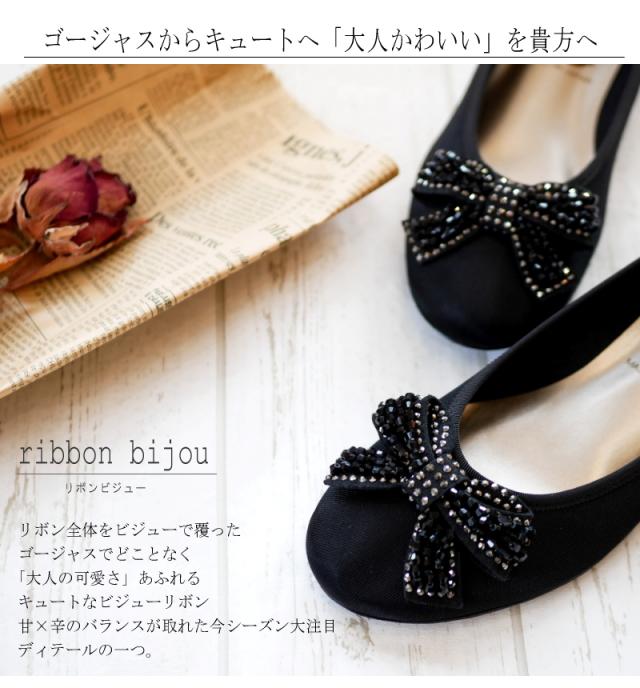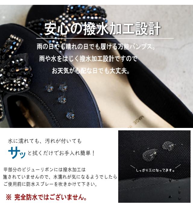 日本製・撥水加工!ゴージャス&フェミニンビジューリボン・モールドソールパンプス★