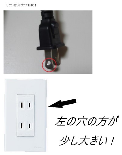 (プラグの片方が大きい場合、大きい穴の方に合わせると差し込むことができます。)