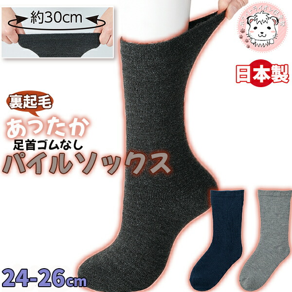 ゴムなし あったか 裏起毛 パイルソックス クルー丈 ゆったり 保温 防寒 冷えとり 日本製 24-26cm | メンズ 靴下 ソックス くつ下 ホカホカ HOT