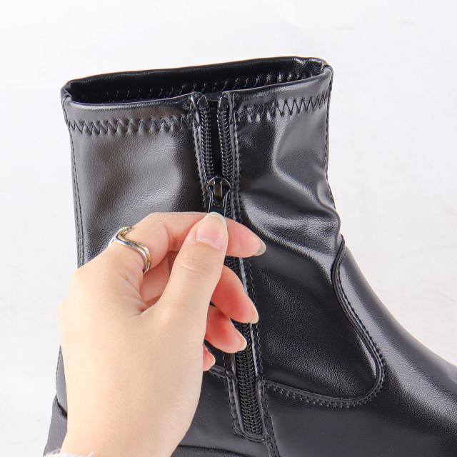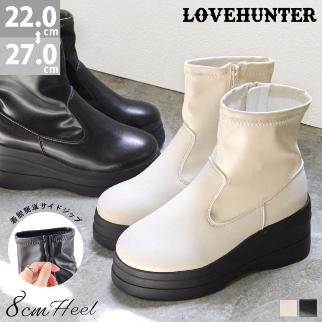 【返品交換不可】レディース ショートブーツ ストレッチ 厚底 軽量 8cmヒール No.1619 22.0-27.0cm LOVEHUNTER ラブハンター