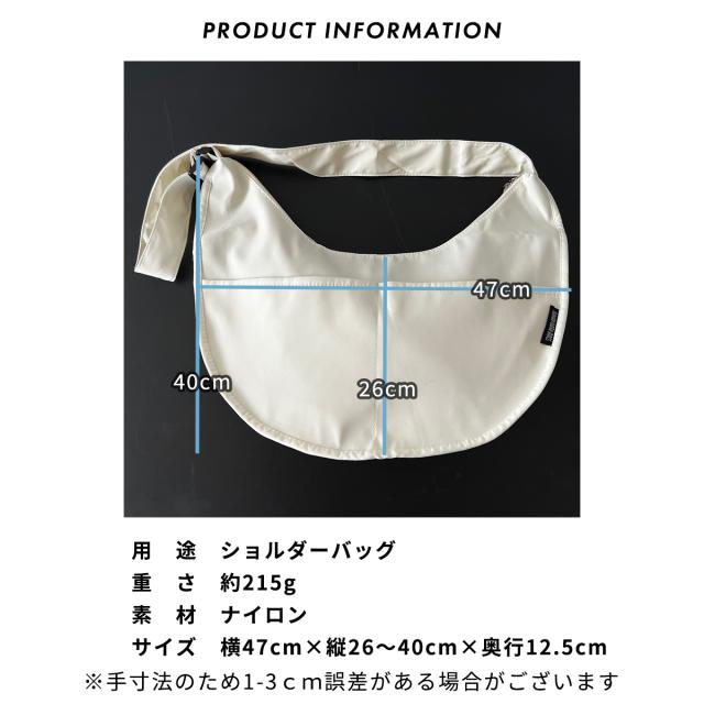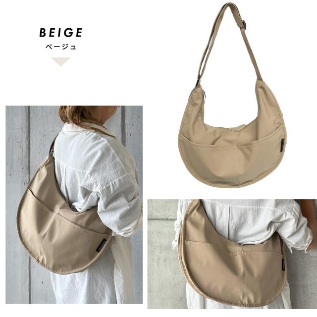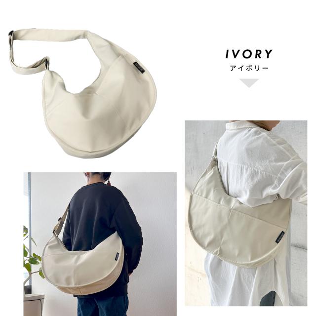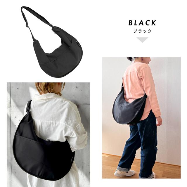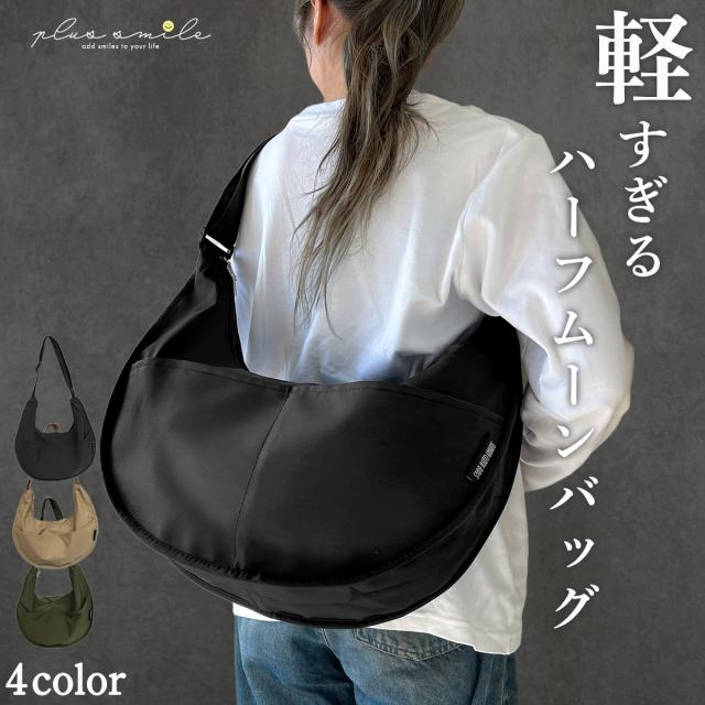 ショルダーバッグ ハーフムーン レディース メンズ 大きめ 斜めがけ a4 軽量 ナイロン スポーティー 大容量 とにかく 軽い 可愛い かっこいい 女の子 おしゃれ かわいい 撥水 畳める 女子 中学生 高校生 学生 通学 ファスナー付き バナナ型 ハーフムーンバッグ ガバッと開く