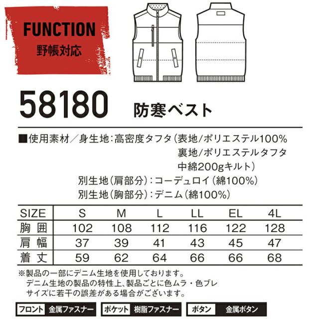 防寒ベスト ジャウィン 58180 防寒着 防寒服 かっこいい 作業服 作業着 アウトドア JAWIN 自重堂