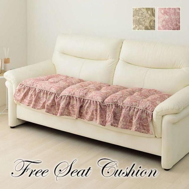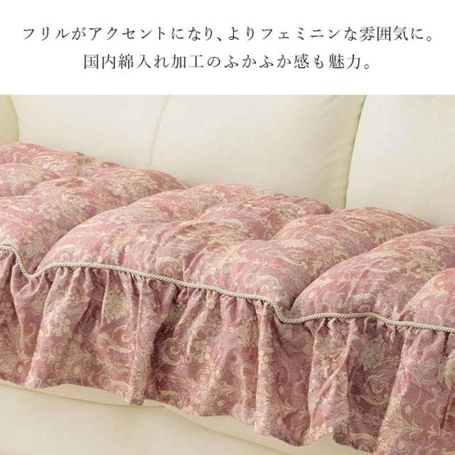 シートクッション 長座布団 フリーシート フリル付き 長方形 53x160cm おしゃれ エレガント 3人掛けソファー用