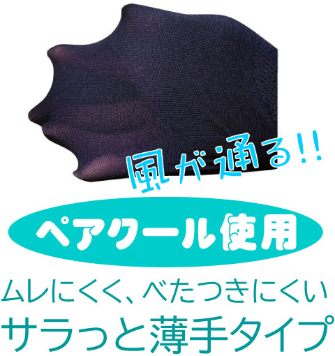 | 生地はペアクール(吸放湿性に優れたペアクール)使用なので風が通り易く、夏の暑い時にも使いやすい。 |