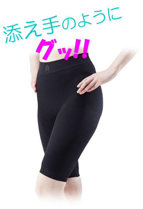 パッド状着圧ラインが添え手のように支えるスパッツ