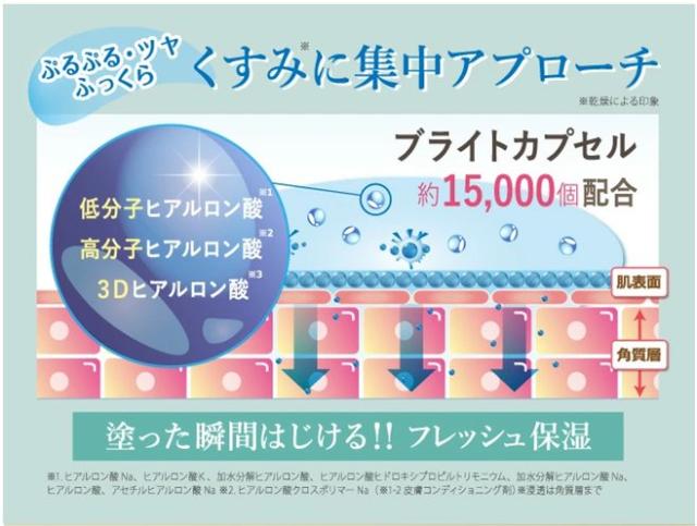 | 〇乾燥によるくすみ肌に、集中アプローチ うるおいによるブライトスキンが目指せる、菌活オールインローション。自然が育んだ、イタヤカエデ樹液の"メープルウォーター"を約84%贅沢配合。肌にアプローチして、余すことなくスッと浸透します。さらに"乳酸菌/美BIOーpro"が肌を整えます。 〇"乳酸菌/美BIOーpro"とは? シジミから採取した乳酸菌を使用して、肌効果の高い成分を開発。研究を重ねた結果、最も相性のよかったメトハギの葉・茎を、このシジミ由来乳酸菌で発酵させた成分が、乳酸桿菌/メドハギ葉/茎発酵液です。肌をやわらかくしながらツヤ・キメを整え、肌荒れを防止します。 〇ブライトカプセルを約15,000個配合 3Dヒアルロン酸に加え、複合ヒアルロン酸を新鮮なままカプセル化。内にも外にも、すみずみまでうるおいを与えます。さらにエーデルワイスカルス培養エキス、カイコまゆエキス、アルガニアスピノサ核油、ツバキ種子油、コハクエキス、グルタチオンのこだわり成分配合です。 〇とろみあるテクスチャーで"ふわもち"肌に 贅沢成分を配合した、とろみのあるテクスチャー。美容液のような化粧水でありながら、柔軟成分もしっかり配合しているので"ふわもち"の肌に。肌をやわらげて整え、次に使う化粧品の浸透を促す、ブースターのような化粧水です。 |