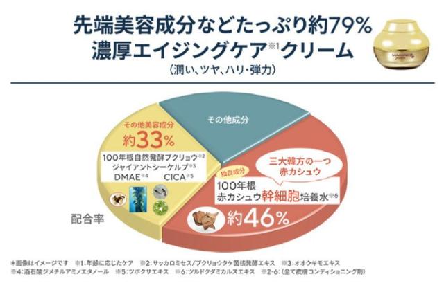 | 成分 | ツルドクダミカルスエキス、水、マカデミア種子油、ホホバエステル、ジイソステアリン酸ダイマージリノレイル、BG、プロパンジオール、セテアリルアルコール、シア脂、ジステアリン酸ポリグリセリル−3メチルグルコース、カカオ脂、ミツロウ、ステアリン酸グリセリル、オリーブ油脂肪酸セテアリル、サッカロミセス/ブクリョウタケ菌核発酵エキス、ツルドクダミ根エキス、サッカロミセス/(ハマスゲ根/ホオノキ樹皮/ボタン根/モモ核)発酵エキス液、オオウキモエキス、デュナリエラサリナエキス、スイゼンジノリ細胞外多糖体、(アクリル酸ブチル/イソプロピルアクリルアミド/ジメタクリル酸PEG−18)クロスポリマー、フォリオタミクロスポラ多糖体、クロイゲ葉エキス、乳酸桿菌/オタネニンジン根エキス発酵液、加水分解コラーゲン、ダミアナ葉エキス、ツベルアエスチブムエキス、バクチオール、酒石酸ジメチルアミノエタノール、ホスファチジルコリン、ヒアルロン酸Na、加水分解ヒアルロン酸、ヒアルロン酸ヒドロキシプロピルトリモニウム、ヒアルロン酸クロスポリマーNa、ヒアルロン酸K、加水分解ヒアルロン酸Na、ヒアルロン酸、アセチルヒアルロン酸Na、セラミドEOP、セラミドNS、セラミドNP、セラミドAS、セラミドAP、フィトスフィンゴシン、ハチミツエキス、タイツリオウギ根エキス、オニノダケ根エキス、スイカズラ花エキス、カンゾウ根エキス、コウキセッコク茎エキス、オニノヤガラ根エキス、オウゴン根エキス、カミツレ花エキス、ツボクサエキス、ボタンエキス、ガラクトミセス培養液、クコ果実エキス、アマドコロ根茎/根エキス、マグワ葉エキス、オリーブ果実油、水添野菜油、スクワラン、パール、アルギニン、β−グルカン、加水分解エンドウタンパク、レシチン、水添レシチン、グリセリン、カプリリルグリコール、カプリル酸グリセリル、エチルヘキシルグリセリン、PG、乳酸Na、フィトステロールズ、コレステロール、ビオチン、オリーブ油脂肪酸ソルビタン、ジステアリン酸スクロース、セスキオレイン酸ソルビタン、ステアリン酸、トリデセス−6、リゾレシチン、ジメチコン、ポリアクリル酸Na、水添ポリデセン、カルボマー、キサンタンガム、クエン酸Na、EDTA−2Na、クエン酸、酢酸トコフェロール、1,2−ヘキサンジオール、ペンチレングリコール、酸化チタン、酸化鉄、フェノキシエタノール、香料 |