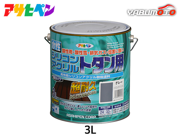 アサヒペン 水性 シリコン アクリルトタン用 3L グレー DIY 塗料 屋外 防錆 ペンキ 屋根 速乾 ツヤあり シャッター 1回塗り 鉄部 木部