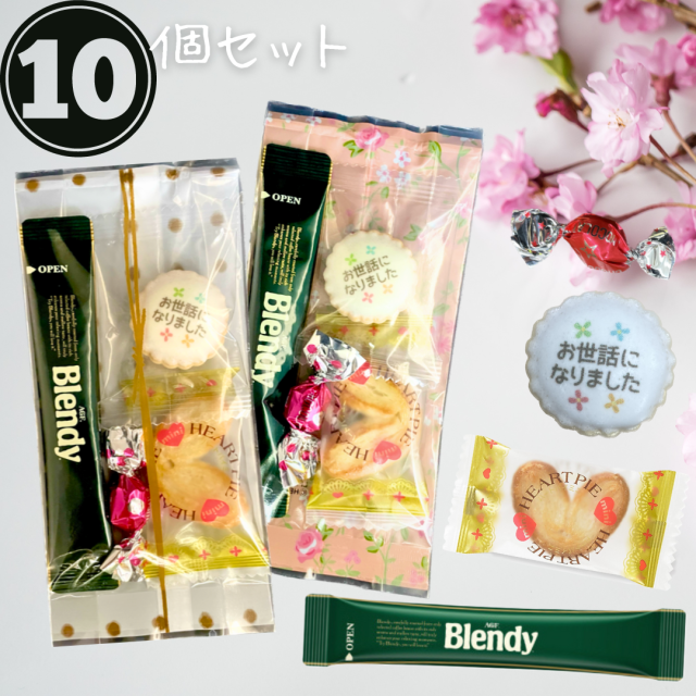 お世話になりました 退職 プチギフト内容量:ハートパイ1個、チョコレート1個、ブレンデイスティックコーヒー1本、メッセージ入りアイシングビスケット1個 10袋様々なシーンでご活用いただけます。退職や異動、産休の際などにお世話になったあの人へ。ラッピング済みなので手間いらず。配りやすいサイズでプチギフトに最適です。