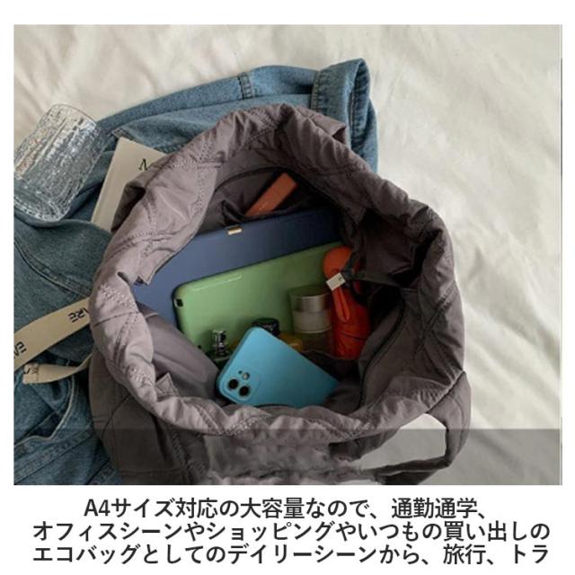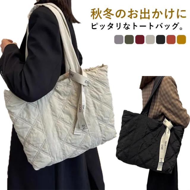 トートバッグ キルティング 大きめトートバッグ レディース ダウン風 a4 大きめ 軽量 ナイロン 大容量 通学 通勤 カジュアル お出かけ ファスナー エコバッグ 韓国 プレゼント ギフト 女性 20代 30代 40代 50代 7color 送料無料