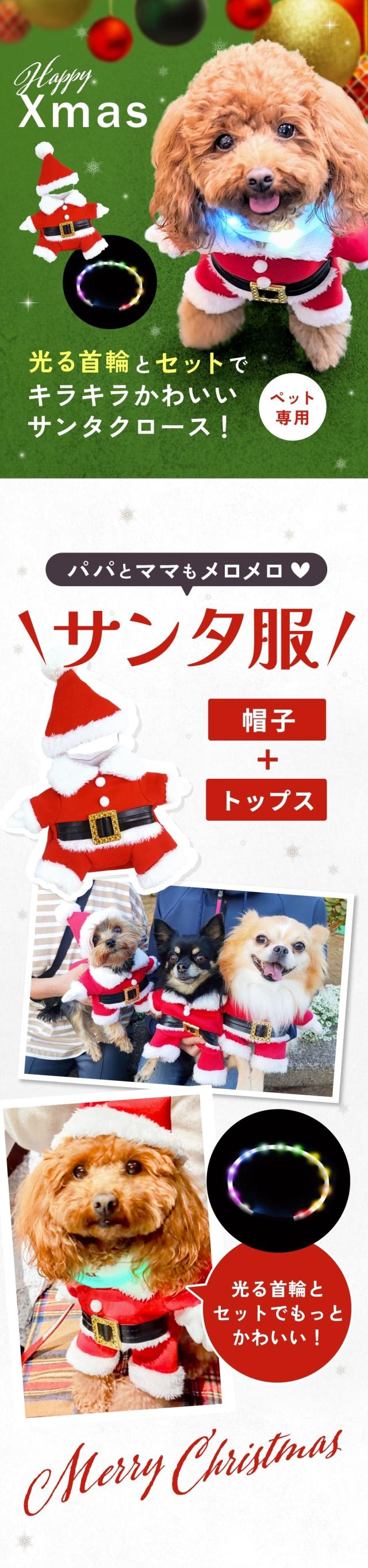 [光る首輪&サンタ服セット] 犬 光る 首輪 充電式 LED ライト サンタ ウェア 可愛い ペット 犬服 サンタクロース コスプレ 猫 小型 中型 大型 クリスマス