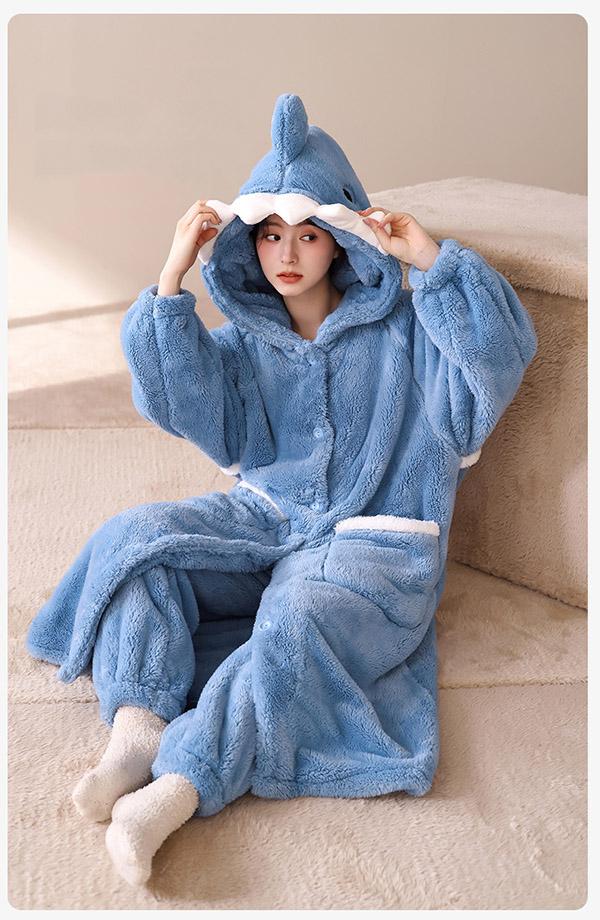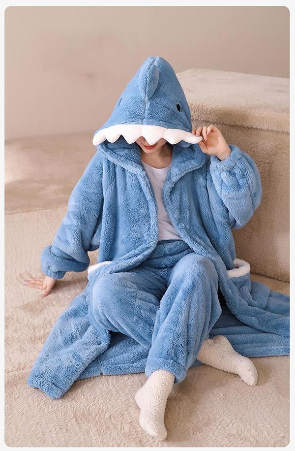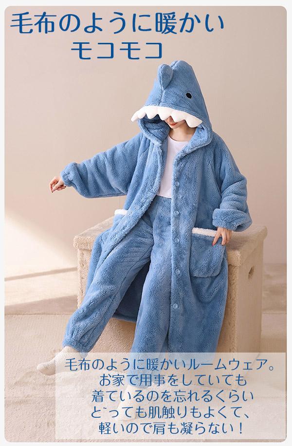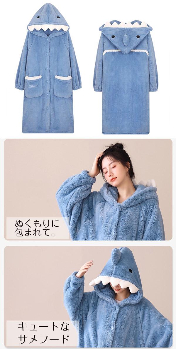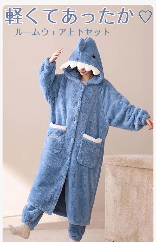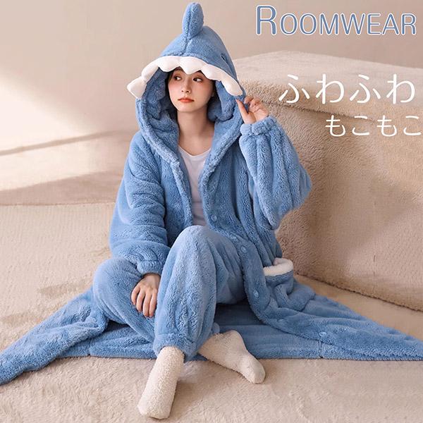 着る毛布 ロング ふんわり ルームウェア ワンピース サメ パジャマ レディース パーカー 2点セット もこもこ ふわふわ ガウン ロング ナイトガウン 部屋着 あったか かわいい カーディガン 部屋着 暖か あたたか 羽織り 贈り物us027s1s1jc