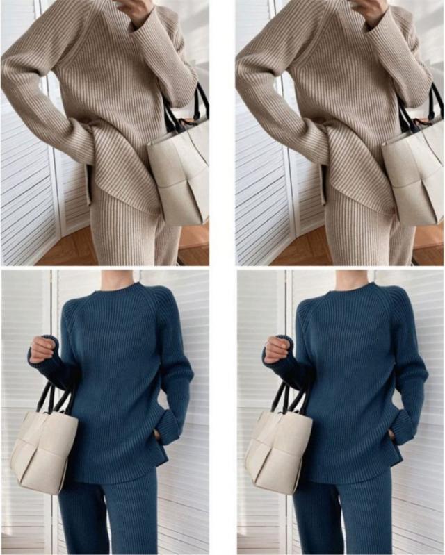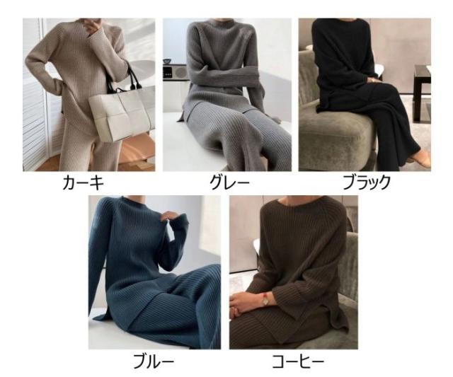 セットアップ レディース ニットセット 無地 パンツセット 上下セット 2点セット ニット スリットセーター ワイドパンツ 秋冬