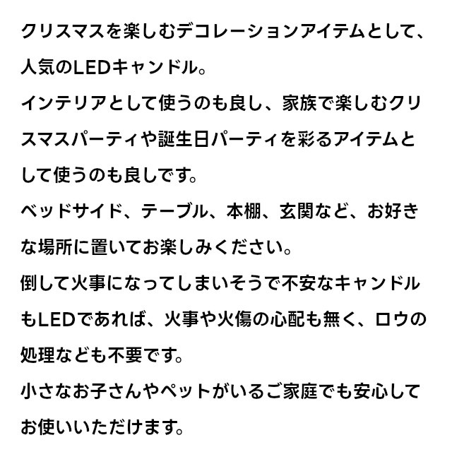 クリスマスを楽しむデコレーションアイテムとして、人気のLEDキャンドル。 |