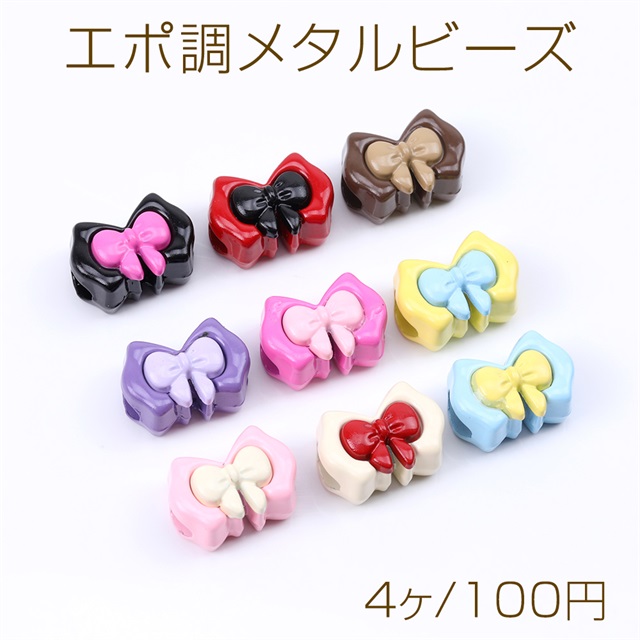 エポ調メタルビーズ リボンモチーフ 縦穴 10×14mm(4ヶ)