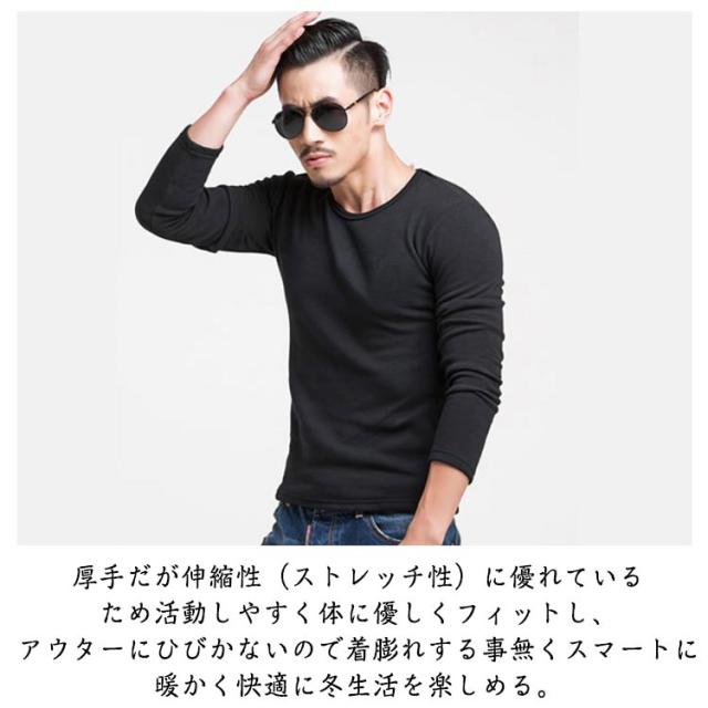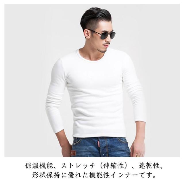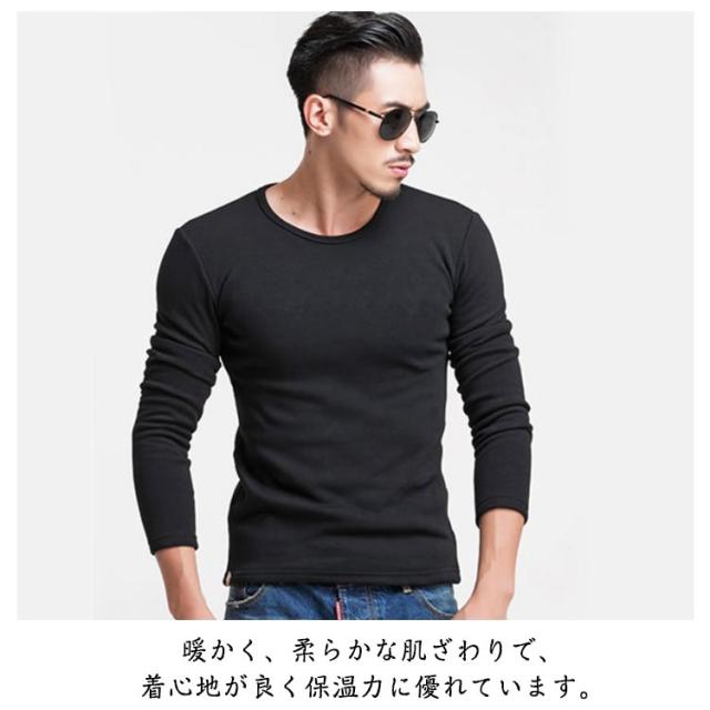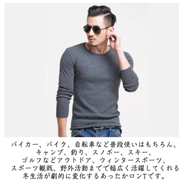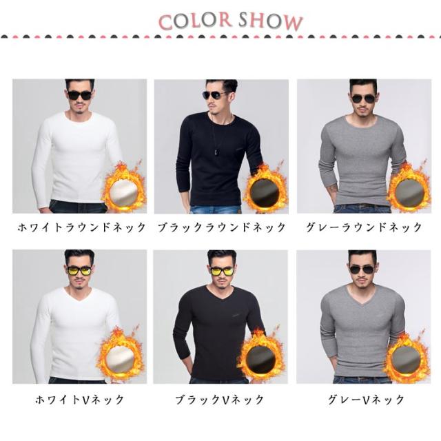 長袖Tシャツ インナー 発熱 Tシャツ トップス 発熱 メンズ インナー 厚手 ストレッチ 防寒 長袖 裏起毛 保温 下着 裏シャギー ロンT 白 グレー 黒 下着 Vネック ラウンドネック 野外活動 スポーツ観戦 秋 冬