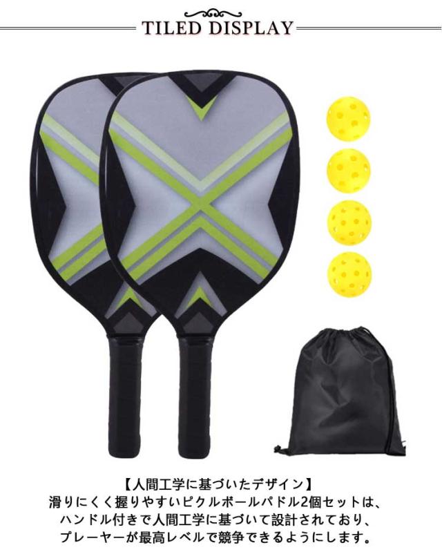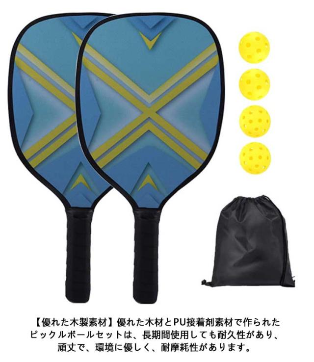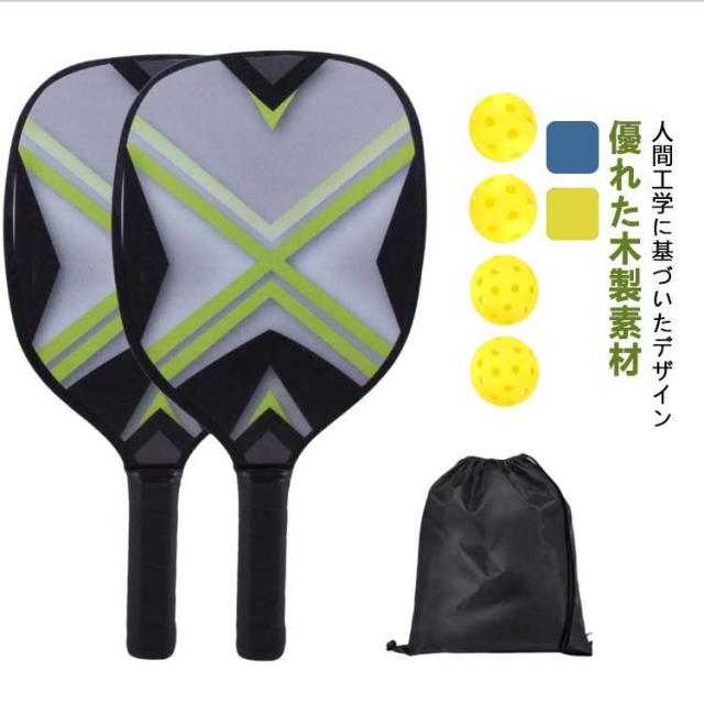 ピックルボール パドルセット ピックルボールパドル 木製 軽量 ピクルボール ラケット 2個 クッション付き ピックルボール ラケット グリップ ボール4個付き 収納袋付き アウトドア スポーツ 屋内屋外用 ギフト