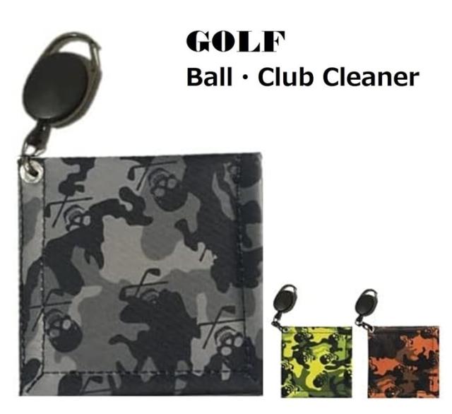 ゴルフ ボール拭き タオル スカル 迷彩 カラビナ ワイヤー付き 便利 グッズ デザイン ボール クリーニング ゴルフ用品 小物 メンズ レディース おしゃれ クラブタオル ピンオンリール ボールクリーナー ゴルフボールクロス