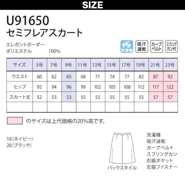 Unilady セミフレアスカート 17号 19号 U91650 吸汗速乾 カーブベルト 家庭洗濯可 エレガントボーダー 春夏 制服 事務服 オフィス ヤギコーポレーション