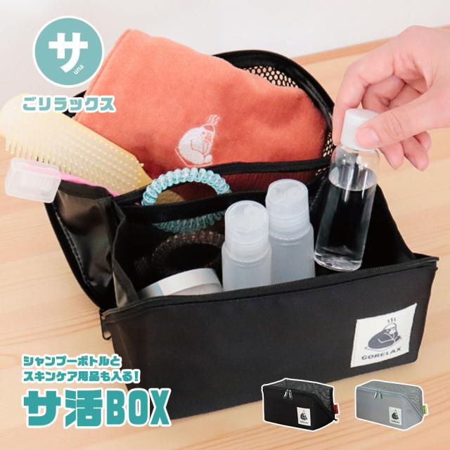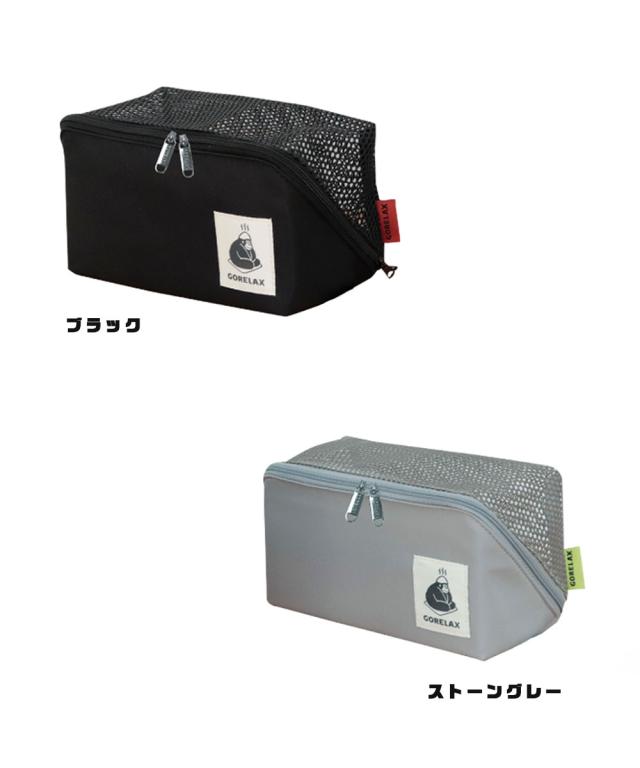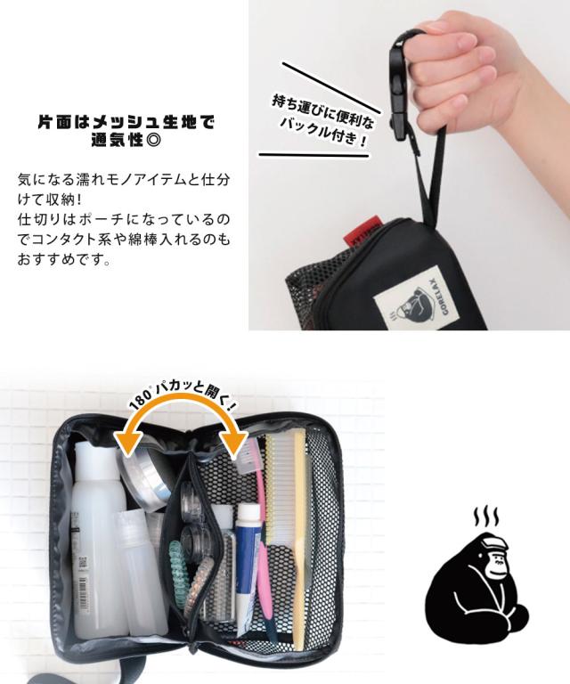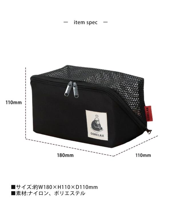 ポーチ 温泉 サウナ バニティポーチ バニティケース メッシュ コスメ メイクポーチ スパ バッグ 大容量 温泉 化粧品 収納 ボックス型 メッシュ 仕切り 旅行 プール ジム ブラック 黒 グレー ごリラックス パタッとサ活BOX