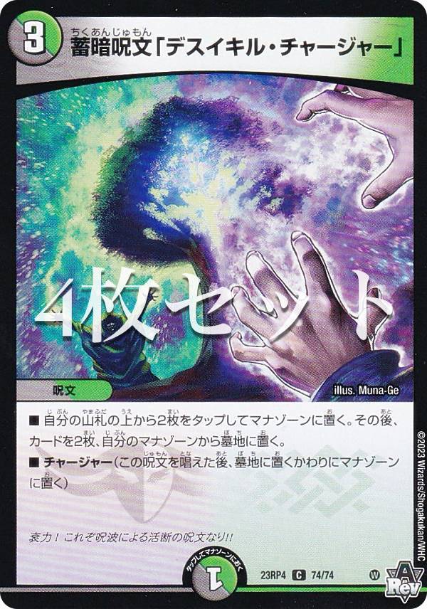 【4枚セット】デュエルマスターズ DM23RP4 74/74 蓄暗呪文「デスイキル・チャージャー」 (C コモン) アビス・レボリューション 第4弾 竜皇神爆輝 (DM23-RP4)
