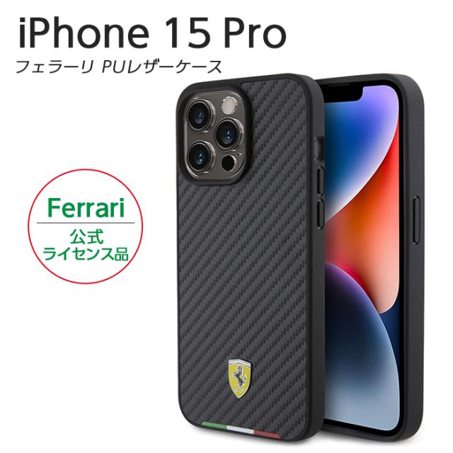 iPhone 15 Pro ケース フェラーリ iPhone15Pro カバー カーボン スマホケース ブランド Ferrari メンズ おしゃれ かっこいい ブラック