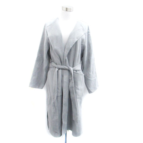 【中古】グローバルワーク GLOBAL WORK ノーカラーコート ガウンコート ロング丈 リボンベルト付 F グレー レディース