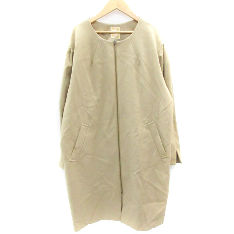 【中古】ビームスハート BEAMS HEART ノーカラーコート ロング丈 ジップアップ ベージュ /YM3 レディース