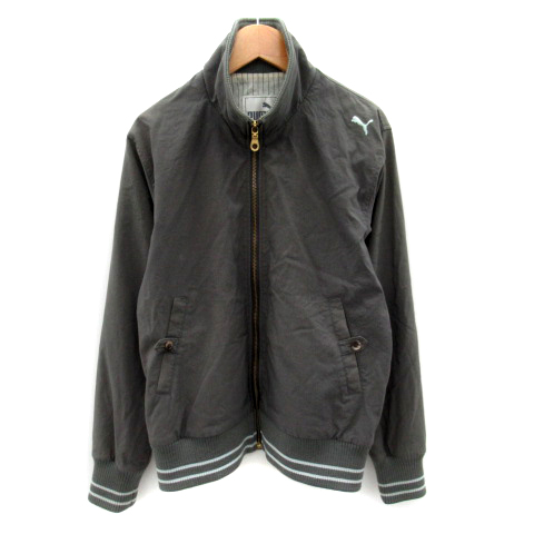 【中古】プーマ PUMA ブルゾンジャケット ミドル丈 スタンドカラー 無地 ジップアップ L カーキ /SY35 レディース