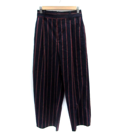 【中古】グローバルワーク GLOBAL WORK ワイドパンツ アンクル丈 ストライプ柄 S 紺 ネイビー ボルドー レディース