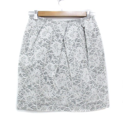 【中古】ジュエルチェンジズ アローズ タイトスカート ひざ丈 総レース 花柄 36 グレー 白 ホワイト /FF43 レディース