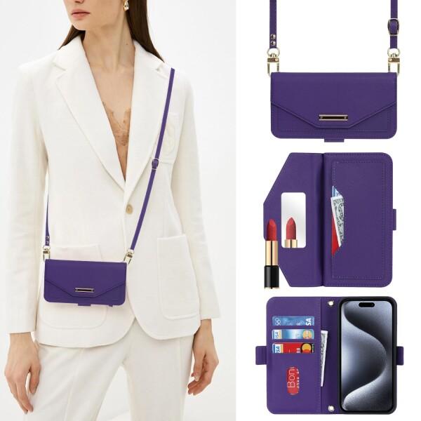 対応 iphone 15 pro ケース 手帳型 ショルダー 鏡 アイホン15プロケース ストラップ付き ミラー カード収納 財布 いphone15 pro ケース クロスボディケース 肩がけ 首掛け 斜め掛け 耐衝撃 レザ