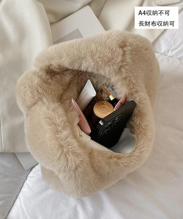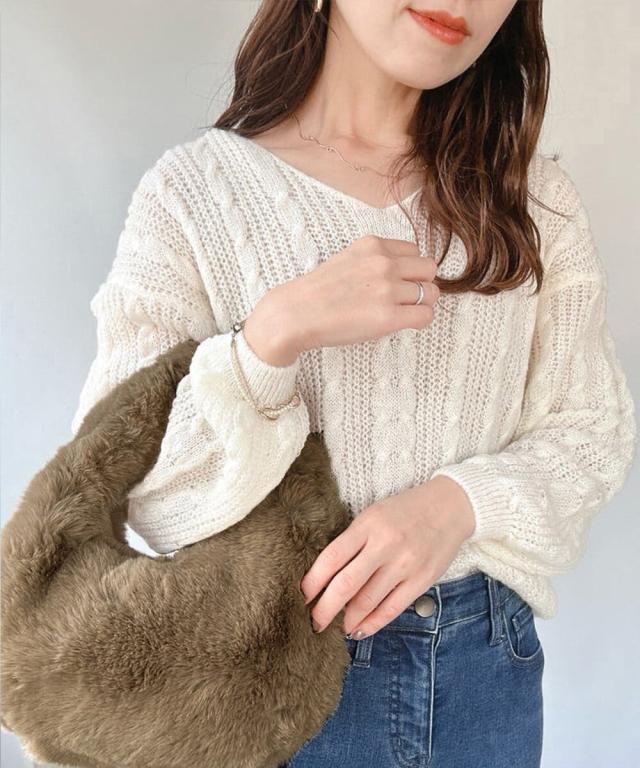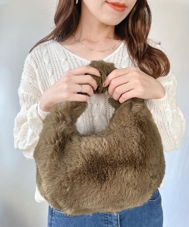 フェイクファーの手触りとモコモコ感が、バッグに遊び心と可愛らしさをプラス