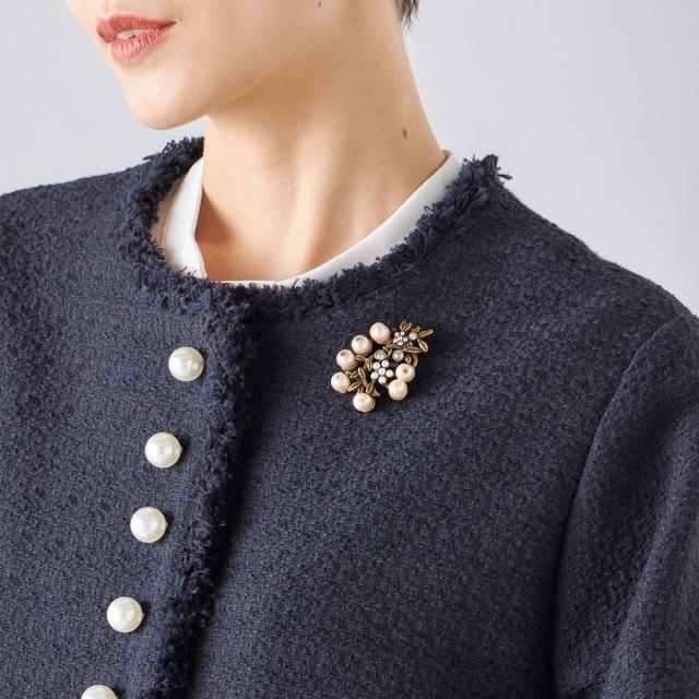 パールモチーフとその周りのきらりと光るストーンで、ジャケットや羽織につけるだけで一気に華やかな印象に。