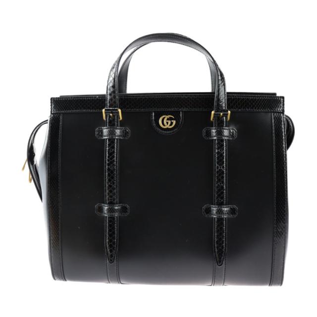 超美品 GUCCI グッチ ダブルG ミディアム トート 711057 トートバッグ レザー パイソン ブラック ハンドバッグ ビジネスバッグ 日本限定【本物保証】
