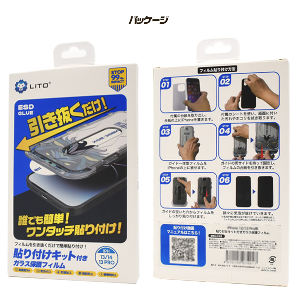 簡単貼り付け ガラスフィルム iPhone16e iPhone14 iPhone13 iPhone13Pro用 ズレない 綺麗に貼れる 貼り付けキット付き 保護フィルム 透明 汚れ防止 傷防止 保護シール 保護シート 手触り滑らか キズ防止 飛散防止 液晶保護シール iPhone保護シール スマホ保護フィルム
