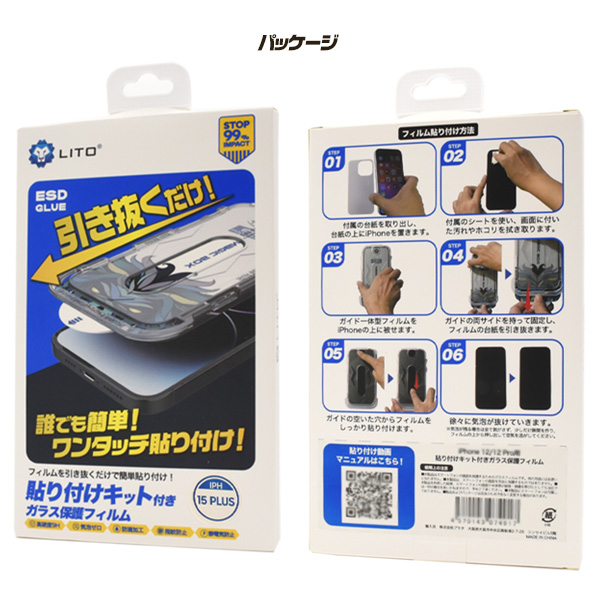 簡単貼り付け ガラスフィルム iPhone15Plus用 ズレない 綺麗に貼れる 貼り付けキット付き 保護フィルム 透明 汚れ防止 傷防止 保護シール 保護シート 手触り滑らかキズ防止 飛散防止 液晶保護シール 液晶画面保護 iPhone保護シール スマホ保護フィルム