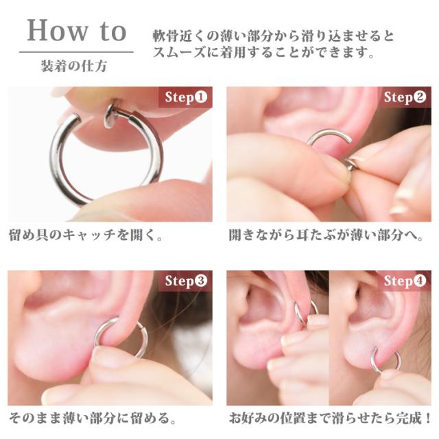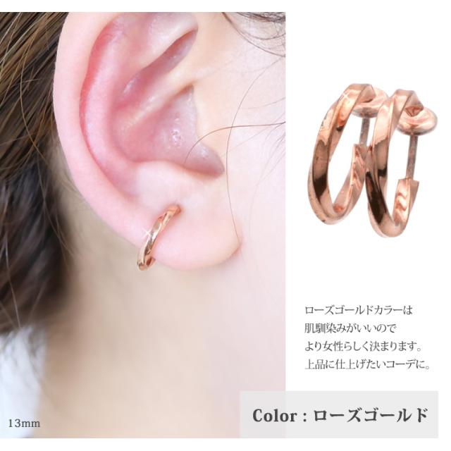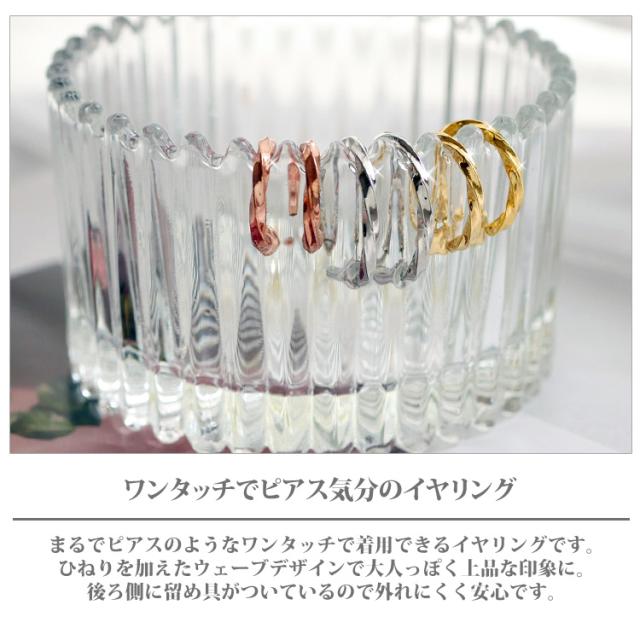 ワンタッチで着用できる、ステンレスイヤリング。まるでピアスのようなウェーブデザイン。後ろ側にしっかりとした留め具がついているので、外れにくい安心デザイン着用した感じは、まるでピアスのよう。後ろ側にしっかりとした留め具がついているので、外れにくい安心デザインです。ピアスみたいに、さりげなく着けていただけます。 素材には、金属アレルギーの方にも安心なサージカルステンレスを使用。使い勝手の良さとデザインが魅力的なステンレスイヤーカフを是非お試しください。シルバーやホワイトゴールド、プラチナで金属アレルギーが出てしまう方にもオススメです。