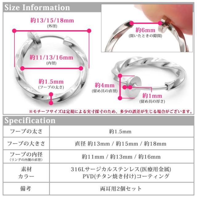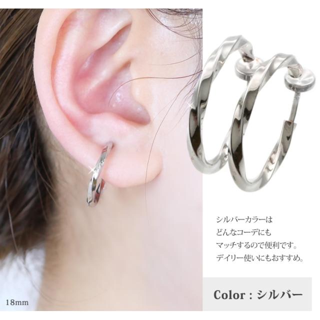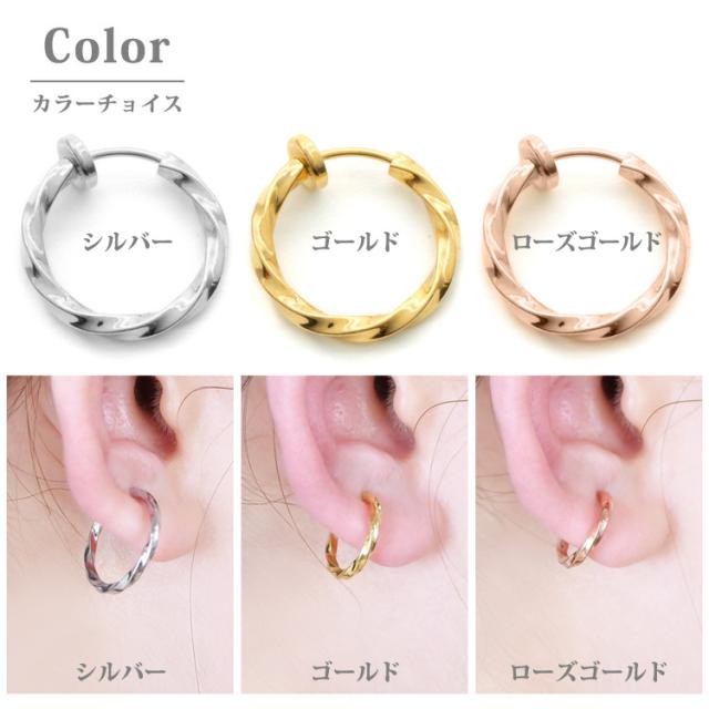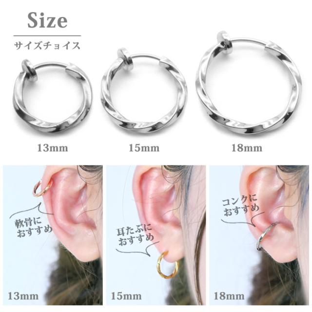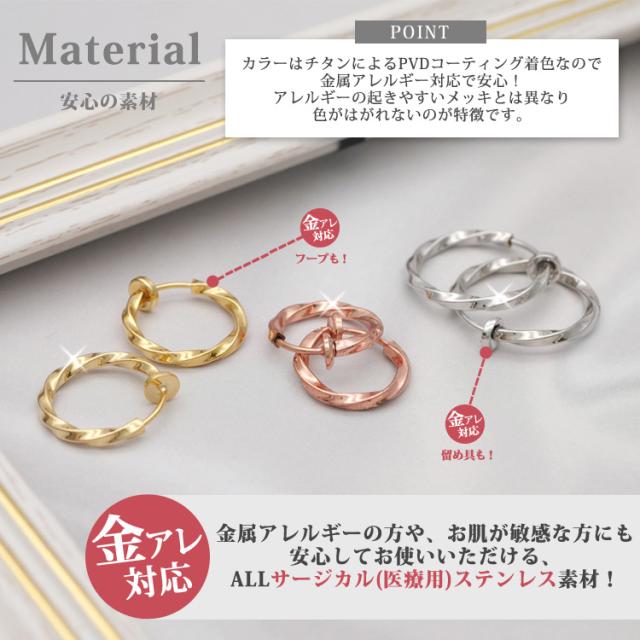 金属アレルギー対応 医療用サージカルステンレス製 ステンレスイヤリング ウェーブフープイヤリング 両耳用 316L