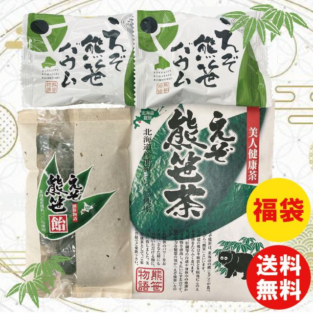 えぞ熊笹茶(2g×16袋入り)1袋、えぞ熊笹バウム1個、えぞ熊笹飴(130g)1袋 【送料無料】健康 北海道 福袋 新年 年末 ダイエット セット お得