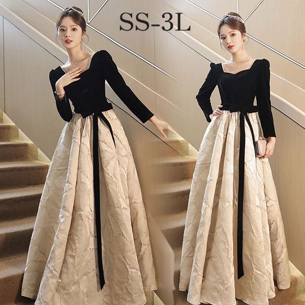 ドレス 大人 ピアノ 発表会 ロング丈 ぽっちゃり 大きいサイズ イブニングドレス 演奏会 ピアノ発表会 袖付き ワンピース Aライン ステージドレス 二次会 女子会 成人式 パーティードレス 大人可愛い bg071zezezr